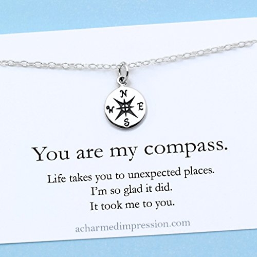• Custom sentiment card reads: You are my compass. Life takes you to unexpected placed. I’m so glad it did. It took me to you.