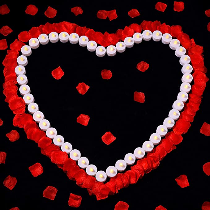 Set the perfect mood and ambiance with this set candles and rose pedals!