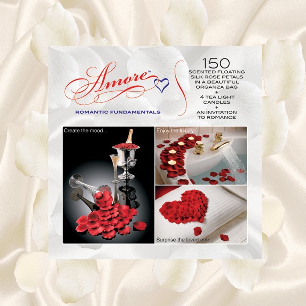 This box is a big seller. The outside says it all: Very Romantic on high quality paper board, each box holds 150 Silk Rose Petals, scented and floatable, 4 tea lights to set the mood and an invitation to romance. One stop shopping. You may want to add other extras to the end cap, i.e. chocolates; champagne, etc. The tea lights are of high quality wax, giving a nice glow to the romantic evening. You can use it for showers, bedroom design, parties, anniversaries and of course Valentine’s Day. The possibilities are endless. The package needs no wrapping, it is a present and mood setter by itself.